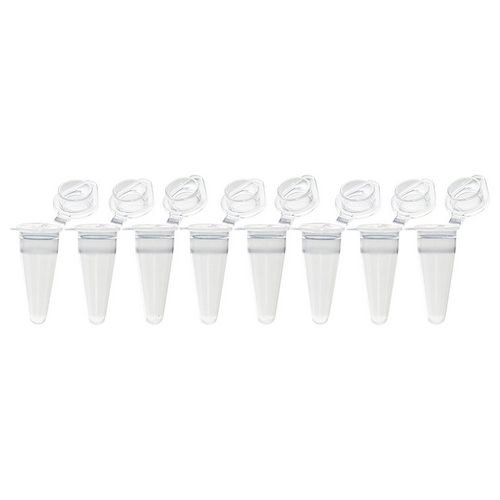 Globe Scientific, PCR-QS-01F, QuickSnap 0.1mL 8-Strip Tubes, with Individually-Attached Flat Caps, Clear