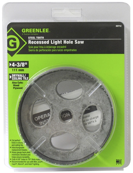 Greenlee 35712 4-3/8" Steel Toothed Recessed Light Hole Saw