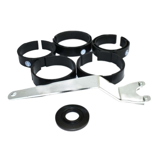 Angle grinder dust cover guard with brushes for easy Height adjustment as tool grinds, easy to replace brushes, no need to change shroud only change the brushes. angle grinder attachments. The shroud has a removable edge piece for surface work flush to edges or other objects. It also has soft brushes that help contain the dust and allow for smooth movement over the work surface.