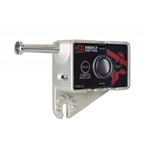 The FireFly® Fuse Tool Voltage Detector, model FTVD-15, combines a fuse tool, voltage detector and spotlight in one single product, saving time and adding an extra level of safety while working on distribution lines. The voltage detection function will check for voltage on the line - red LEDs will flash and an audible alarm is activated when voltage is detected. Then use the Fuse Tool function to open and close the fuse cutout or switch. Bright white lights located on both the top and front of the tool will provide illumination at night or in the dark for better visibility and added safety. Get the work done three times as fast with the FireFly Fuse Tool Voltage Detector.