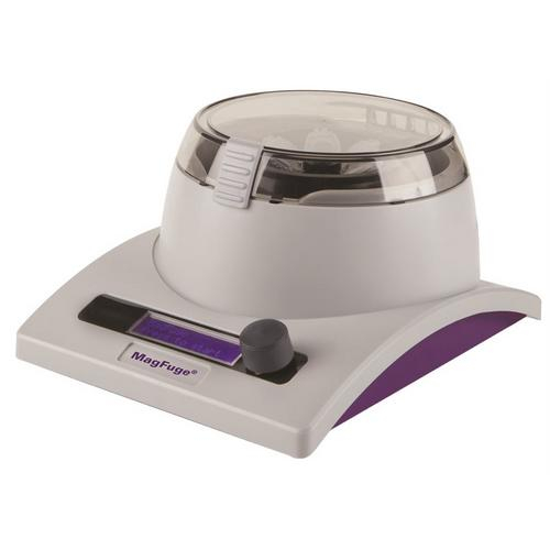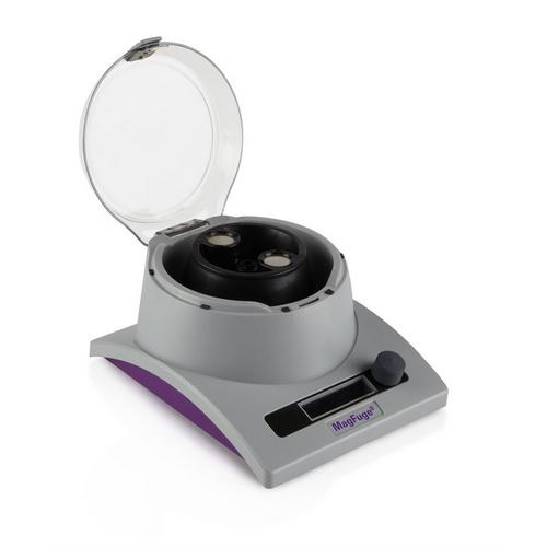 The MagFuge® by Heathrow Scientific is the industry’s first high-speed centrifuge (12,500 rpm) and magnetic stirrer (3L), combined into one unit. This design innovation enables a substantial cost savings for labs by not having to purchase two pieces of equipment, a stirrer and a centrifuge, because the MagFuge® does it all.The high-speed centrifuge is designed to give you maximum speed and flexibility and is comfortable and easy to use. Safety features ensure it will not operate when the lid is open, a rotor is jammed, or the unit is out of balance. Ideal for most protocols requiring fast spins (12,500rpm / 9,800 xg), and appropriate for PCR, microfilter cell separation, and HPLC protocols.The magnetic stirrer offers a powerful magnetic coupling that ensures consistent accurate alignment of the stir bar that significantly reduce the chance of spin-outs. After hours of continuous use, the unit remains cool ensuring sample integrity. A silicone mat is included to help prevent spills and to help keep vessels stable.