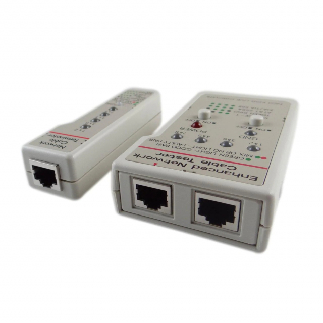 Thi enhanced network cable tester is designed to quickly test RJ45 cable wiring. It is designed for cable installers and network professionals who want simplified results. The enhanced network cable tester is a useful tool for quickly identifying cable continuity functions and resolve the most common cable issues.