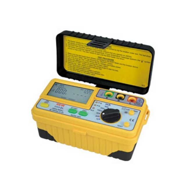 The 1113 EL is a compact hand-held residual current detector, earth leakage circuit breaker, or ground fault circuit interrupter tester (designation could be different from country to country). It is designed to meet international standards of performance and safety. This model is a high-quality instrument used by professionals to obtain accurate protection disconnection times when a selectable fault current is injected into the earth (ground).