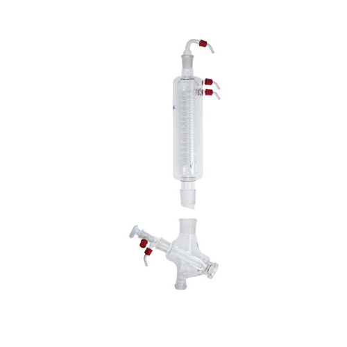 Vertical intensive condenser with double jacket and distributor for particularly efficient condensation. The solvent to be distilled can be continuously fed in at the distributor using the PTFE inlet tube.