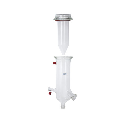 Dry ice condenser for distilling low-boiling solvents. The solvent to be distilled can be continuously fed in through the PTFE inlet tube. Cooling by dry ice, no cooling water required. Max. condensation thanks to low temperatures. Condenser and receiving flask coated for shatter protection.