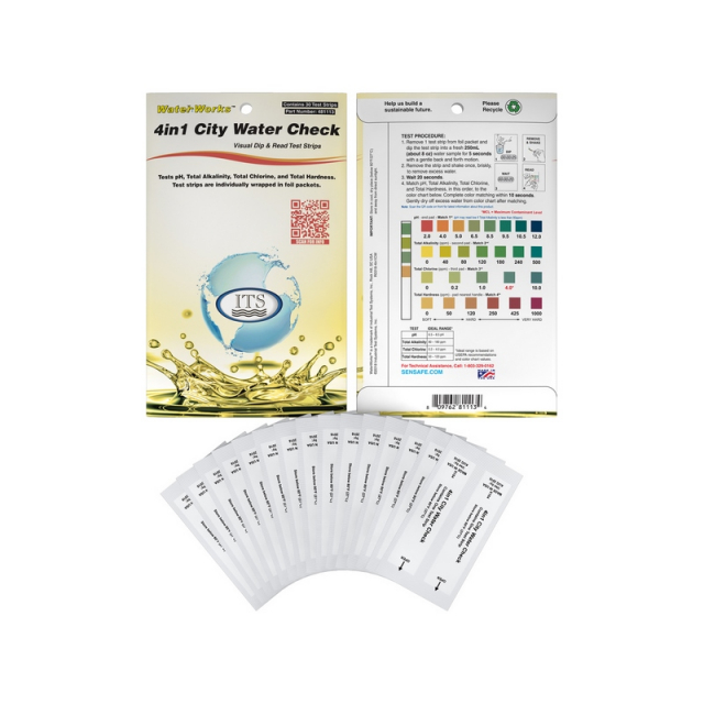 The WaterWorks™ 4-in-1 City Water Check for water quality testing is specifically designed to measure the major parameters in municipally treated drinking water. Accurate and reproducible results for pH, Total Alkalinity, Total Chlorine, and Total Hardness are achieved in less than 30 seconds without sacrificing cost. The 4-in-1 City Water Check water quality test is the quickest and easiest way to make sure your drinking water is safe.