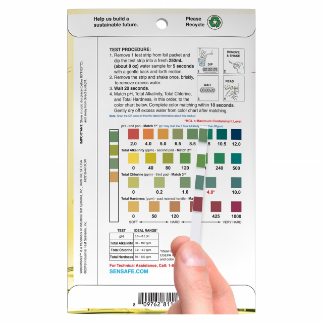 Industrial Test Systems, 481113, WaterWorks™ 4in1 City Water Check Test Strips (Pocket Pack) 30 Foil packed tests