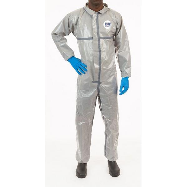 Disposable coveralls designed for protection against a broad range of acids and caustic chemicals. Lighter and more pliable proprietary fabric vs competitive coveralls provides worker comfort. Taped seams improve protection vs coveralls made with serged seams. Recommended applications include emergency response, chemical loading, petrochemical environments and more.