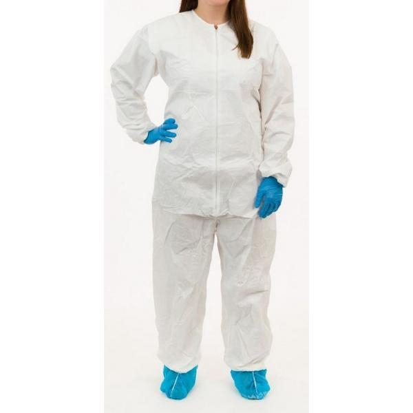 Sterile coveralls made of a comfortable fabric with a superior liquid and particulate barrier. Each is sterilized to a 10-6 sterility assurance level (SAL). Low-linting fabric helps reduce the release of unwanted particulates. Tunnelized elastic provides a more secure closure, stronger seams and eliminate raw edges that may generate particulate. Each coverall is individually packaged.