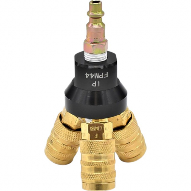 Interstate Pneumatics, FPM44-KH4BS, Aluminum Dome Manifold with Three 1/4" Brass Industrial Couplers and 1/4" Steel Plug