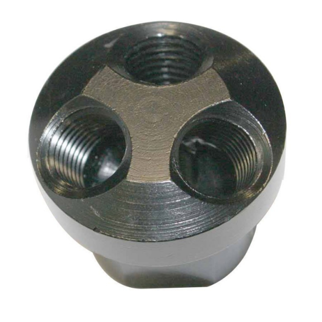 Interstate Pneumatics 3-in-1 (Tripod Style) Round Manifold divides one air source into three 1/4" NPT Female outlet ports. This item is machined from Aluminum bar stock.
