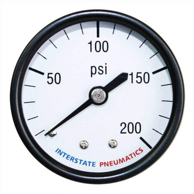 Interstate Pneumatics, G2112-200, 2" Rear Mount Pressure Gauge, 200 psi, 1/4" NPT