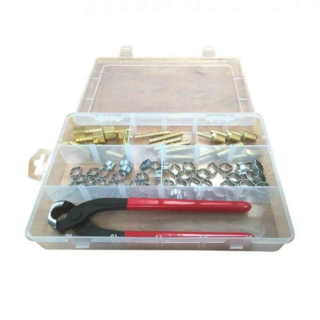Interstate Pneumatics, H11FK, Air Hose Repair Kit with Double Ear Clamps, Crimper, 1/4" Hose Barbs