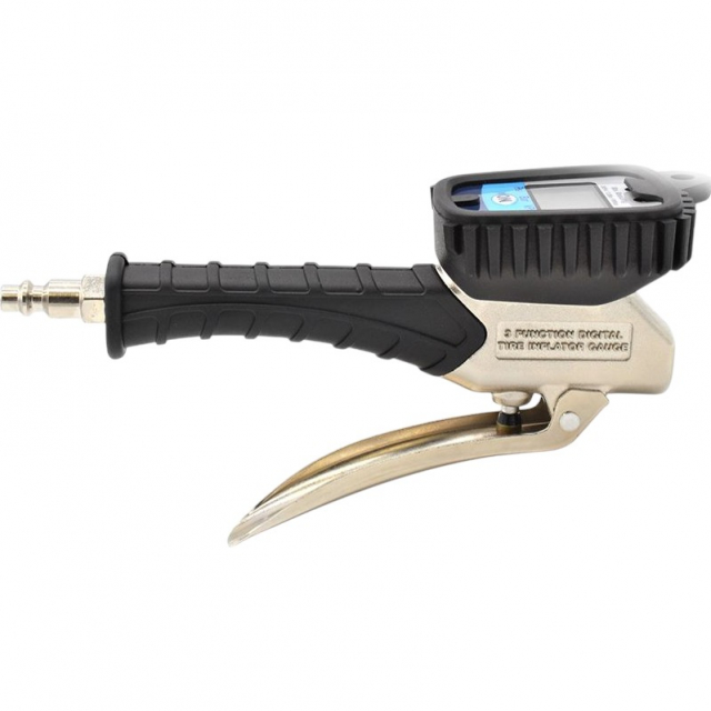The Interstate Pneumatics TF8000 Digital Tire Inflator Gauge is a high-performance inflator designed to measure the air pressure of various tire sizes and vehicle types. Manufactured from a heavy-duty die-cast body with a rubber shroud for durability, performance, and comfort. Equipped with a large digital LCD screen that displays three units of measurement: PSI (0-200), kPa (0-1379), and Bar (0-14). This digital tire inflator gauge can be combined with various hose inflator whips, hoses, and pressure fittings to adapt to pressure inflating and gauging equipment.