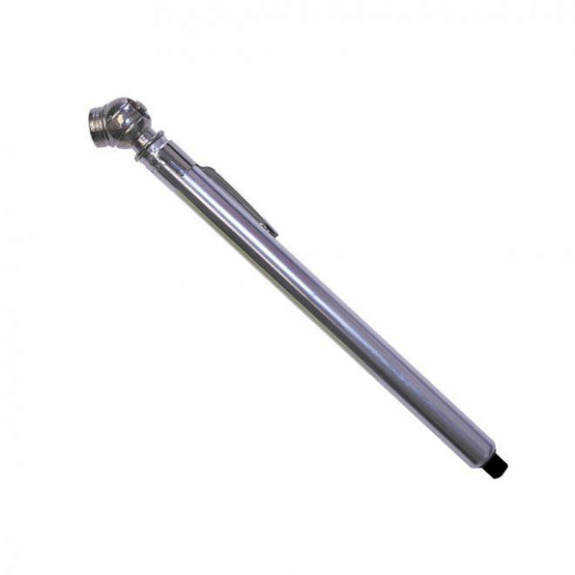 This tire pressure gauge feature chrome plated metal construction and is designed for long and reliable service life. Four-sided black anodized aluminum slide out scale features white printing for easy reading from any angle. Pocket Gauge with Angle Head - 10 - 50 PSI with pocket clip for passenger cars and light trucks.