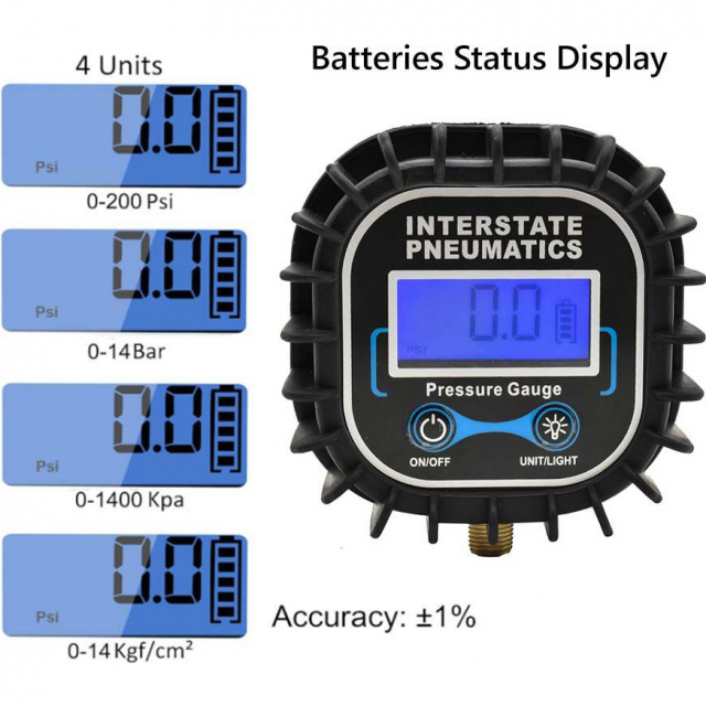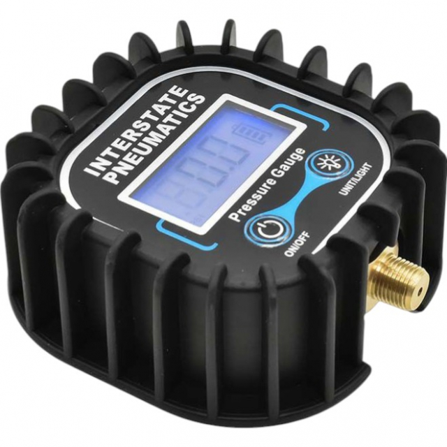 Interstate Pneumatics, TG2022-D, Square Digital Tire Pressure Gauge 2-1/2" Dial Size with 1/8" NPT Bottom Connector and Rubber Protector in Display Pack