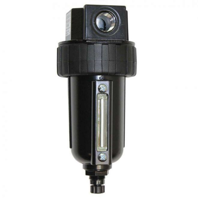 3/8" Standard - Metal Bowl Filter. General purpose filter protects tools and equipment by removing most solid and liquid contaminants. This may include dust, dirt, pipe scale, rust, liquid water and bulk oil. A 40-micron filter element removes the smallest of particles. Metal bowl with sight glass allows easy monitoring of fluid level. Quick-release bowl and quarter-turn drain for easier use. Help prevents costly damage to air tools caused by rust, scale and moisture. Efficiently traps moisture while passing through clean, dry compressed air. Convenient minimum installation time into your compressed air system. It can be freely combined with other air source treatment products.