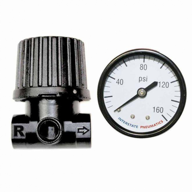 Interstate Pneumatics, WR1120RLG, 1/4" Mini Right to Left In-Line Regulator, 125 psi with Gauge