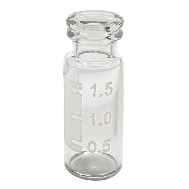 Neck finish allows use of Snap Top Caps, patented Poly Crimp Seals or standard aluminum seals. Snap Ring finish eliminates the need for crimping or decapping. Designed to work in Agilent and other autosamplers.