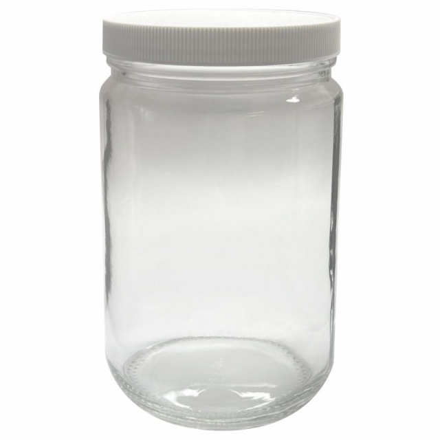 J.G. Finneran Associates, 9-184-3, Precleaned and Certified 32 oz, 1000mL Short Wide Mouth Jar, 89-400mm Thread, White Closure, PTFE Lined