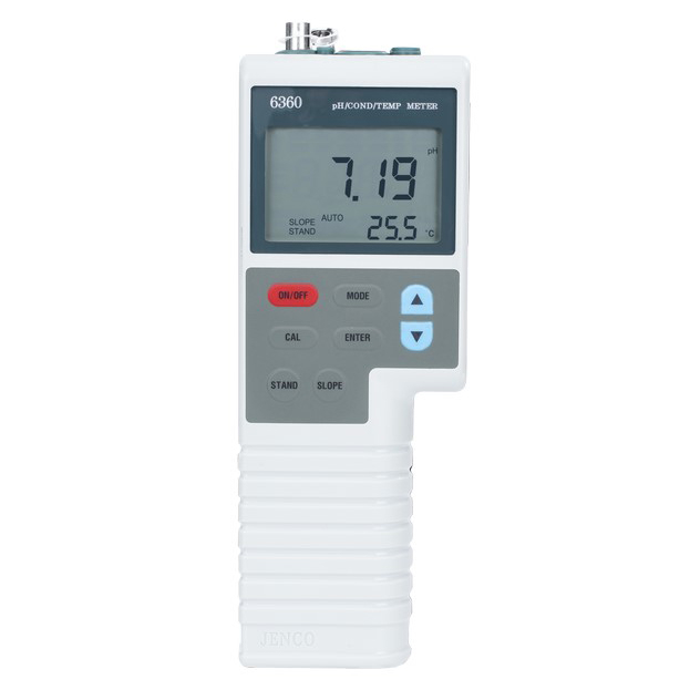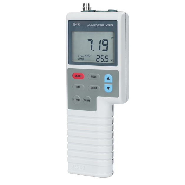 The Jenco 6360 is a high-performance pH/ORP/Conductivity/Salinity/TDS/Temp. handheld meter in a splash-proof case with an RS-232C interface that allows it to communicate with any PC. This meter is CE approved and features Conductivity Cells that are selectable for 2 wire K=0.1 or 4 wire K=0.475 . A simultaneous test of pH , EC and temperature measurements.