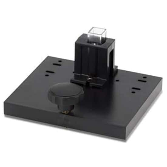 The versatile cell/cuvette holder is compatible 62 series, 6320D only. This holder accepts 10 x 10 mm cuvettes for a 10 mm pathlength, or round cuvettes of 12.7 mm diameter.