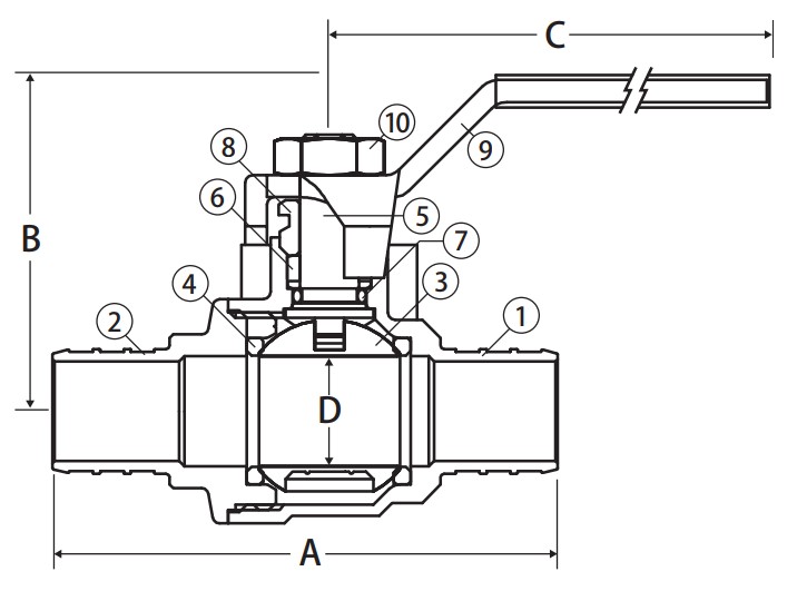 Jomar, 103-528PG, T-412G 2 Piece Standard Port Ball Valve Crimp Pex Connection 400 WOG, 2"