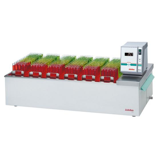 JULABO Heating Circulators with stainless steel bath tanks are mainly used for internal and external temperature tasks. The new range of these models now have increased capacities, allowing for temperature application of larger external systems, as well as open systems. Simultaneous temperature applications of smaller objects can also be carried out directly in the internal bath of the circulator. Models from the TopTech and HighTech Series' are available with different bath sizes and features. Accessories for these units include test tube racks, bath covers etc.