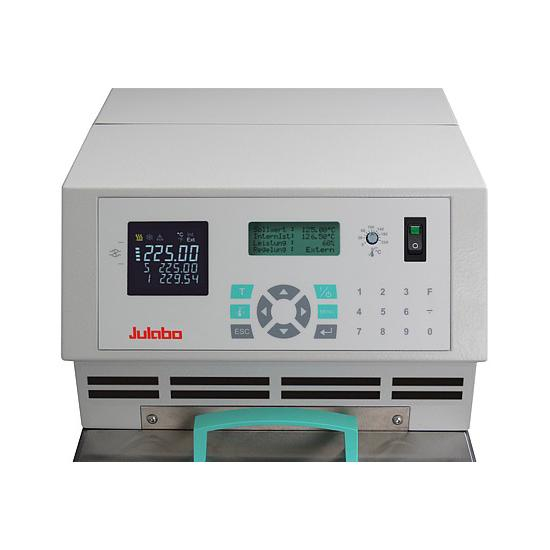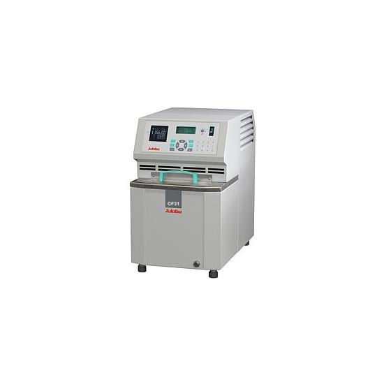 The new CF series offers compact refrigerated/heating circulators. With small overall dimensions the units can even be placed on a very small surface or within a complex installation. All models offer a heating capacity of 2 kW and classification 3 according to DIN12876-1. The maximum ambient temperature of +40C as well as a ventilation air cooling allow installing the units very closely side by side with other units or directly under a fume hood. Furthermore all the models feature pump connections for external temperature applications and a bath opening for temperature control of small objects directly in the circulator bath. Wetted parts are made of high quality stainless steel or plastic. The instruments provide a reliable Microprocessor electronics with high temperature stability as well as warning and safety functions.