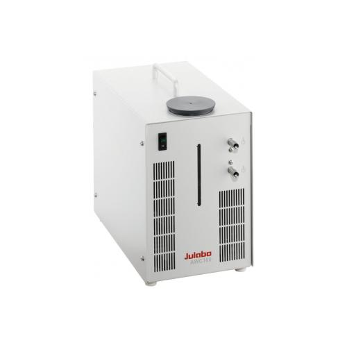 Chillers, Julabo, AWC100 Compact Recirculating Cooler, The AWC100, Air to Water Recirculating Cooler is a compact solution designed to remove small heat loads from external systems such as from Peltier-elements. The AWC100 features a compact footprint and is designed specifically for applications where cooling water can be above ambient and where temperature control is secondary. The ventilator speed can be increased by changing the switch for booster cooling on the rear of the unit. Stage 0: normal cooling capacity (to 400W), virtually noiseless. Stage 1: higher cooling capacity, higher ventilator speed (to 550W).Included with each unit: 2 barbed fittings for tubing 8 and 10 mm inner dia. (pump connections M10x1female)