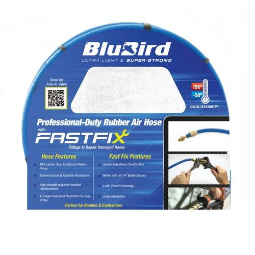 K Tool International, BLBBB14100FX, Blubird 1/4" x 100' Rubber Air Hose with Fastfix