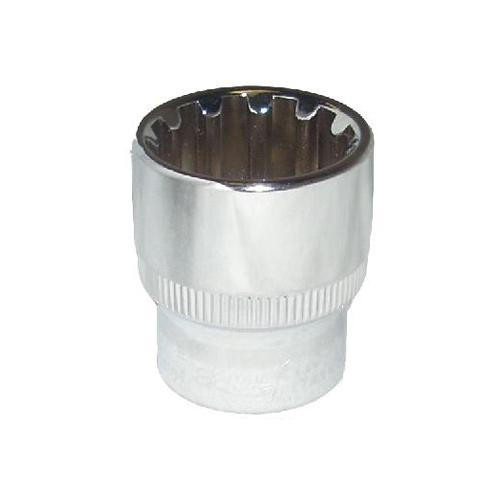 Universal spline sockets can be used with various fasteners such as spline, 6-point, 12-point, 50% rounded, female torx and square. Made of heat-treated chrome vanadium steel for durability. Sockets feature high-polish chrome finish, which protects the tool from harsh working environments. Lifetime warranty. All sockets are marked with part number and size for ease of use.
