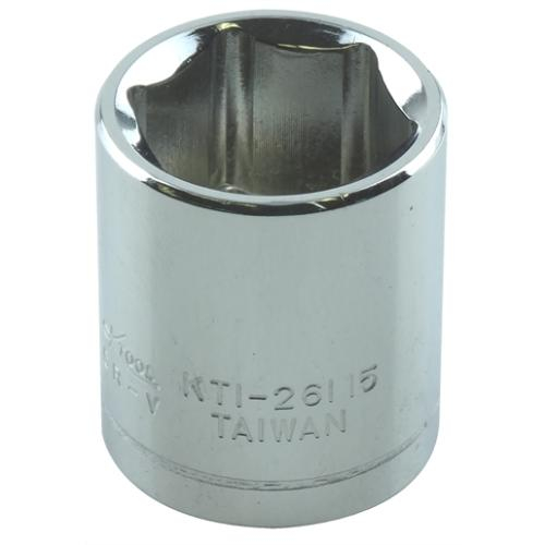 K Tool International, KTI26115, Chrome Socket, 1/4in Drive, Shallow, 6 Point, 15mm
