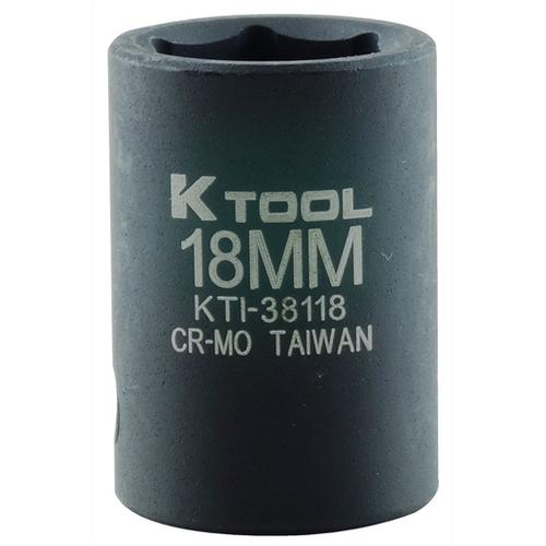 K Tool International, KTI38118, 1/2in Drive x 18mm Standard, 6 Point Impact Socket