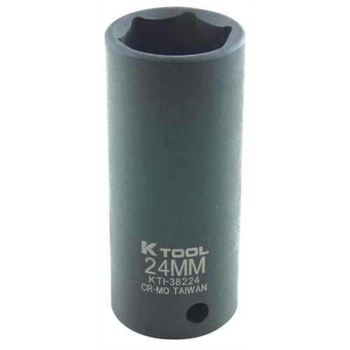 K Tool International, KTI38224, 1/2in Drive x 24mm, Deep, 6 Point, Impact Socket