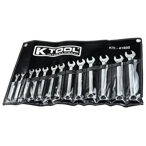 K Tool International, KTI41800, 13-Piece Metric Polished Chrome Combination Non-Ratcheting Wrench Set