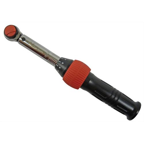 Achieve the proper torque with KTI's 3/8in drive click-style torque wrench. Torque specifications: 50-250 in./lbs. Torque wrench is extremely accurate and easy-to-use. Simply adjust the torque specification on the wrench by releasing the red knob and turning the handle of the torque wrench while holding the shaft of the torque wrench. Torque wrench features a ball detent socket retainer with push-button release for quick socket changes.