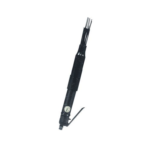 This industrial needle scaler converts to a standard scaler in seconds. Simple “J” slot adjustment for needle wear or to provide more needle exposure. Positive lock retainer.