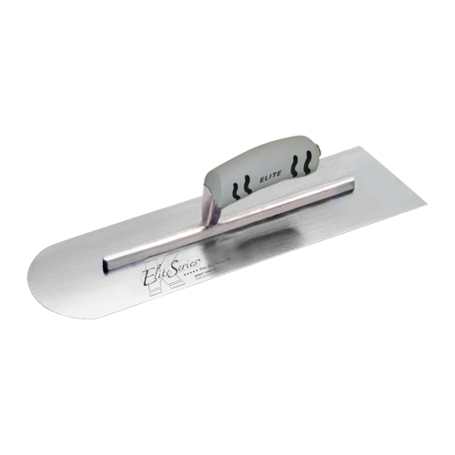 Elite Series Five Star 16" x 4" Carbon Steel Round Front/Square Back Trowel with ProForm Handle. Broken-in and ready for use! Designed and engineered for the professional finisher. High quality carbon steel finishing trowel features a precision ground edge that is "broke-in" and ready for immediate use. Each trowel is made with state of the art machinery that grinds the blade to just the right dimension for that perfect feel. Greater flexibility and durability reduces fatigue when finishing concrete. The rounded front of the blade prevents gouging of the surface, while the square back allows for finishing flush to the edges and corners. A high-strength, lightweight cast aluminum mounting stands up to the rigors of cement work. Compression fit stainless steel power pin rivets attach the mounting to the 16" x 4" blade. An oversized toe rivet provides extra strength when applying pressure during finish work. Guaranteed No-Turn handle design locks the handle to mounting. Kraft Tool's premium flat trowel with patented ProForm soft grip handle (US Patent #6,247,204 B1) provides a comfortable grip. The contoured shape and enhanced texture ribbing of the handle reduces fatigue and provides a great grip even when wet. Proudly made in the USA.