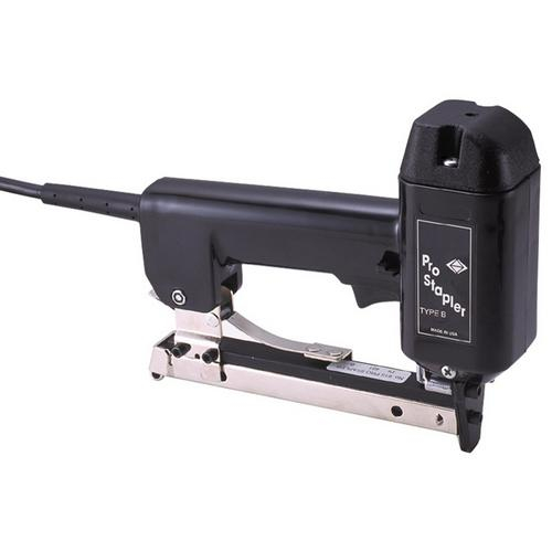 Electric Carpet StaplerPowerful 11 amp. tool drives staples into hardwoods. Jam-proof magazine holds 100 staples. Features a built-in trigger-lock for safety. The stapler height fits under step-risers for easy stapling and features a uniquely designed pointed tip. Proudly made in the USA.