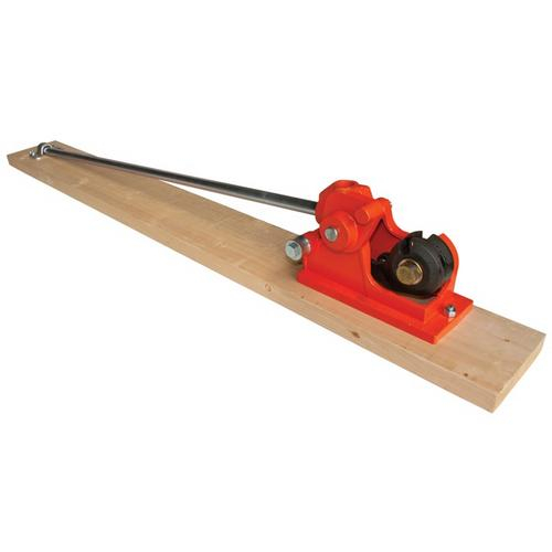 Cuts and bends rebar up to 5/8" diameter. Top loading of rebar makes for fast and easy cutting. Tool is made of heavy-duty castings and shipped mounted on wood board (66"x7-1/2"). Weight 55 lbs.