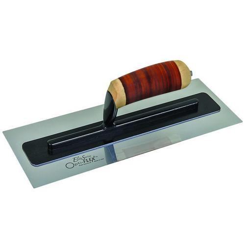The Elite Series Opti-FLEX finishing trowel is made of special premium stainless steel alloy to provide a light, flexible touch. The stainless steel blade is made of a special alloy that will not rust, pit, or stain. The blade is completely smooth with no exposed rivets along the bottom. Each trowel is made with state of the art machinery that grinds the blade to an exacting finish for that perfect feel. A support plate is attached to the top of each trowel blade, to provide stability and the optimum flex on the blade and shank. The lightweight and flexible stainless steel blade provides a soft, controlled touch for plaster and decorative concrete. Square ends with rounded corners to prevent catching and damage. A high-strength, lightweight cast aluminum mounting stands up to the rigors of cement work. Guaranteed No-Turn handle design locks the handle to mounting. Kraft Tool's premium flat trowel with patented laminated hardwood handle provides a comfortable grip. The uniquely colored handle is distinctive and easy to spot on a jobsite. The contoured camelback shape of the handle reduces fatigue and provides a great grip. Trowel holder protects the blade. Proudly made in the USA.