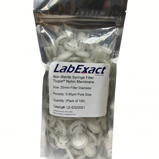 LabExact, LEIWT-ES20001, Trupor Non-Sterile with H&V Nylon Membrane Syringe Filters, 0.45(µm), 25mm