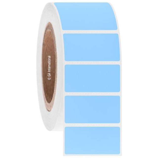 GA International also known as LabTAG, AWB-28C3-1LBL, MetaliTAG Light Blue 3" Core 2" x 1" / 50.8mm x 25.4mm Cryogenic Thermal-Transfer Label for Metal Racks