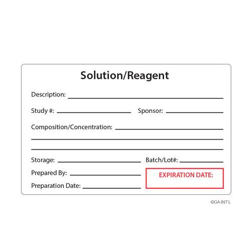 GA International also Known as LabTAG, CALA-012-0.25R, 2.5" x 4" Self-Laminating Calibration Labels "Solution/Reagent"