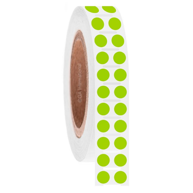 GA International also known as LabTAG, GPB-61NPNOTC3-2GA, Green Apple 3" Core 0.354" / 9 mm Circle Paper Labels for Thermal-Transfer Printers