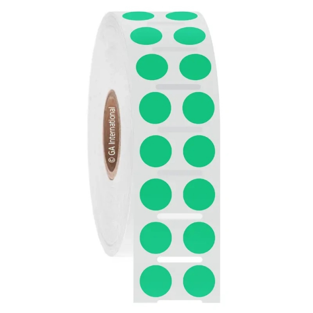 GA International also known as LabTAG, GPB-61NPNOTC3-2MT, Paper Label for Thermal-Transfer Printers - 0.354" Circle, 3" Core, Mint
