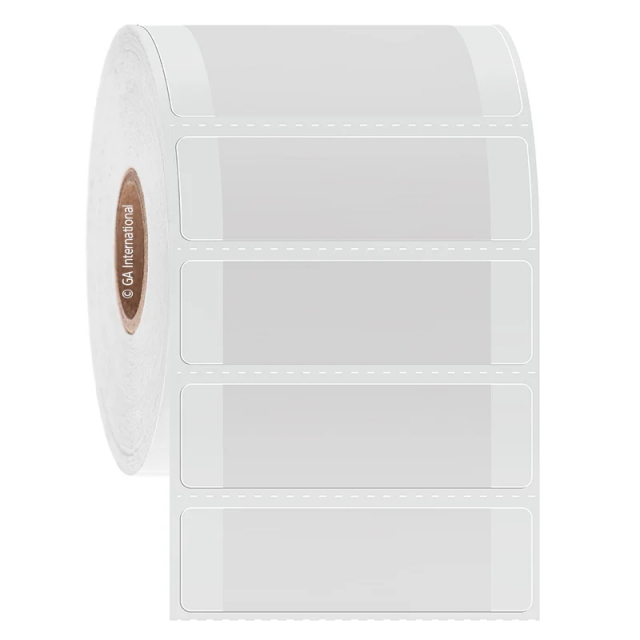 GA International also known as LabTAG, L2FX-410C1-2WH, CryoSTUCK White 1" Core 2.125" x 0.6" / 54 mm x 15.9 mm Cryogenic Thermal-Transfer Labels for Frozen Vials & Tubes