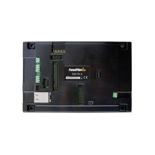 SGD 70-A is a 7" capacitive touch display designed for use with PanelPilotACE Design Studio, a free drag-and-drop style software package for rapid development of advanced user interfaces and panel meters. This off the shelf display features a wealth of hardware interfaces, including four 16-bit bipolar analogue inputs (to a maximum of ±40V d.c.), eight digital input/output pins, two alarm outputs, four 8-bit PWM outputs, PID Control, Ethernet FTP for logged data, multi-channel data logging and trend graphs, serial RS232 and RS485 and an additional add on board to measure temperature.
