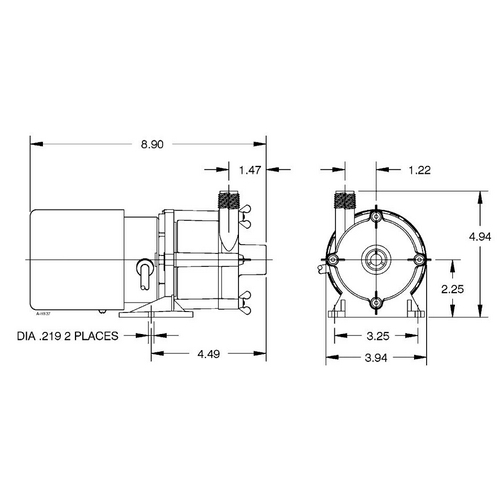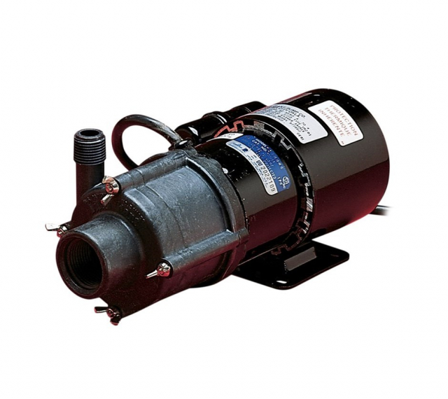 The Little Giant MD series features leakproof, seal-less magnetic drives and are designed for in-line, non submersible use. Volute and magnet housing are glass-filled polypropylene for excellent chemical resistance. Impeller is glass-filled polypropylene and ceramagnet "A" (barium ferrite). Shaft and thrust washers are titanium for excellent wear and trouble-free service. Pumping heads are easily rotated, cleaned or serviced with no special tools required. Spindle shaft is supported at both ends to prevent impeller damage during start-up and stop of pump.